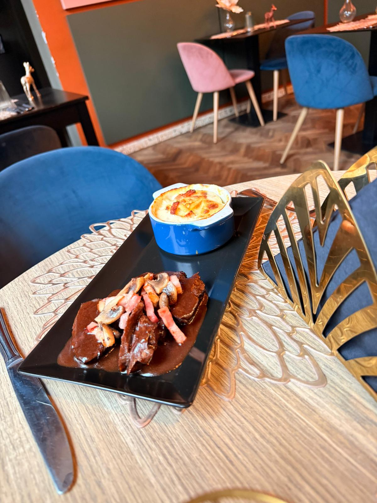 La viande était fondante, la cuisson maîtrisée, et surtout… la sauce. Profonde, savoureuse, parfaitement liée. Une de ces sauces qui racontent une histoire et qui font toute la différence.